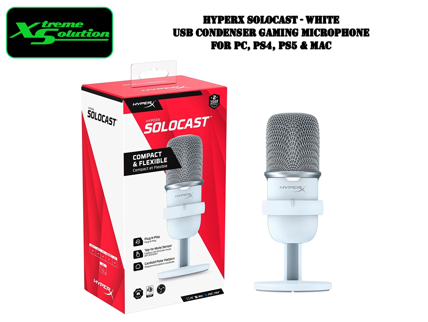 Hyper X SoloCast - USB Condenser Gaming Microphone, for PC, PS5, PS4, and Mac (Black / White)