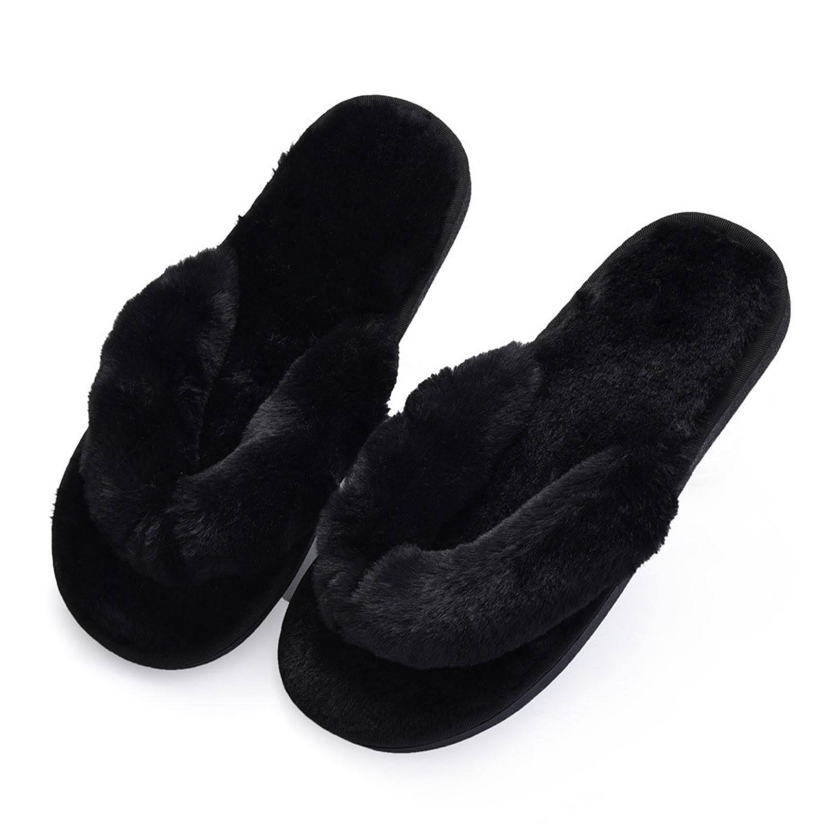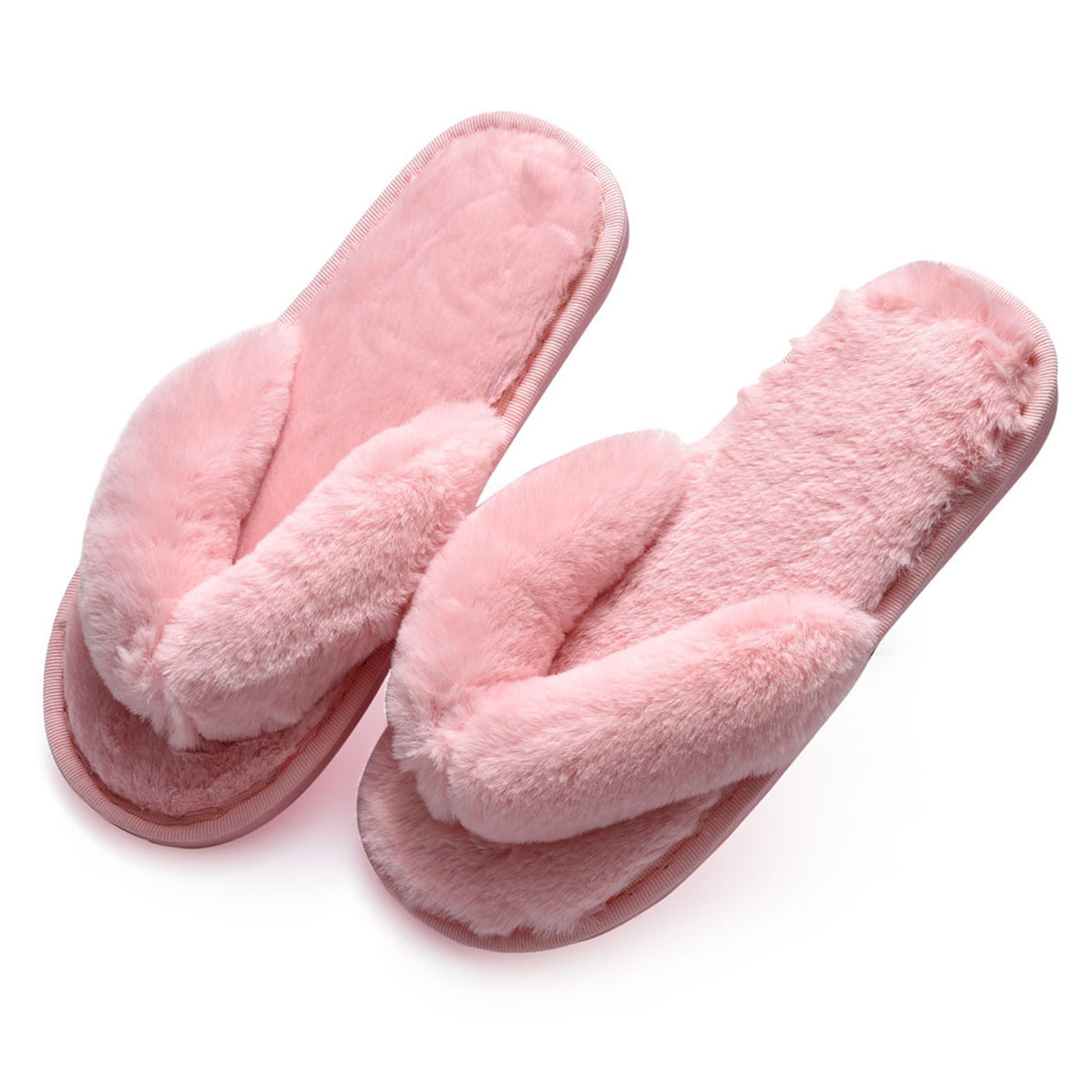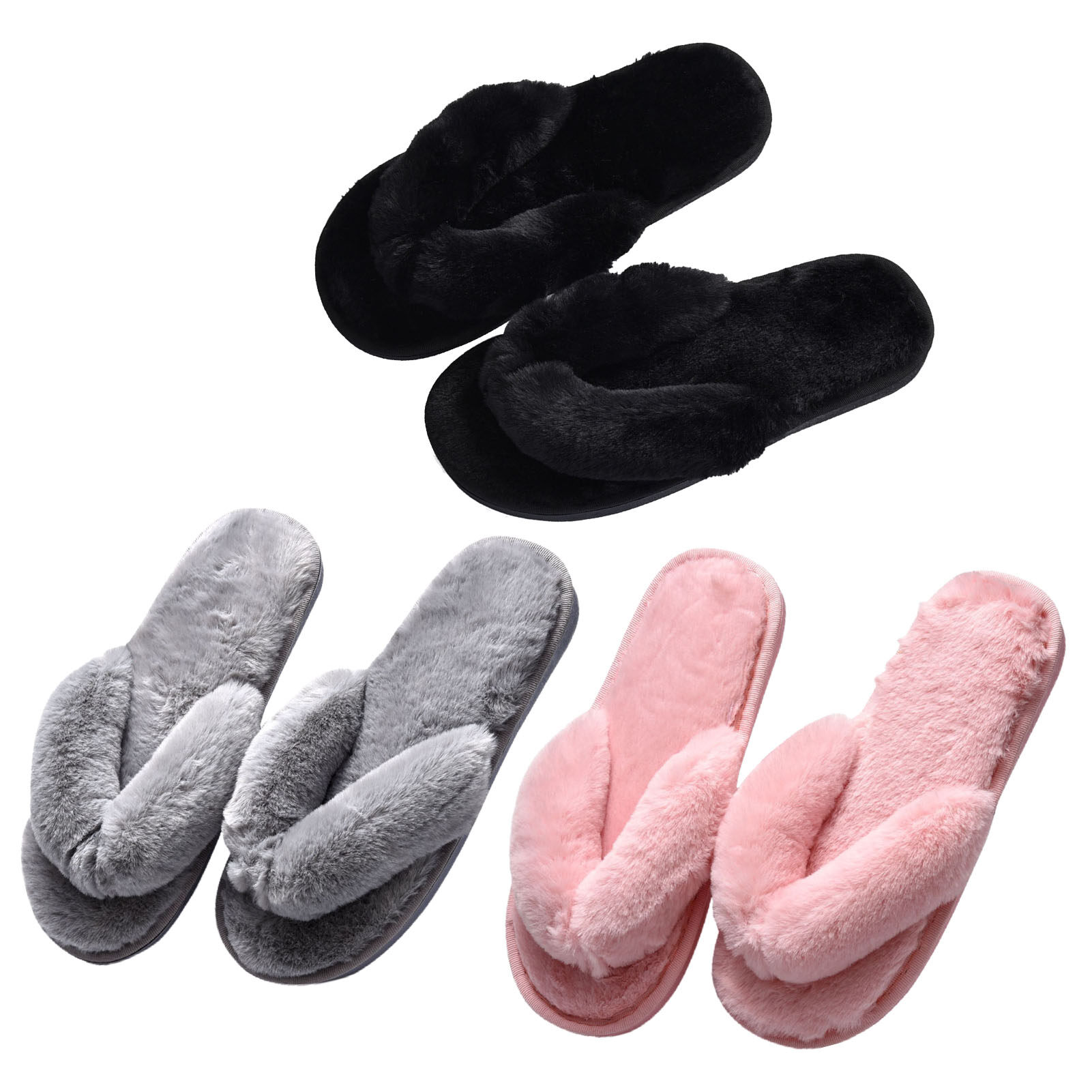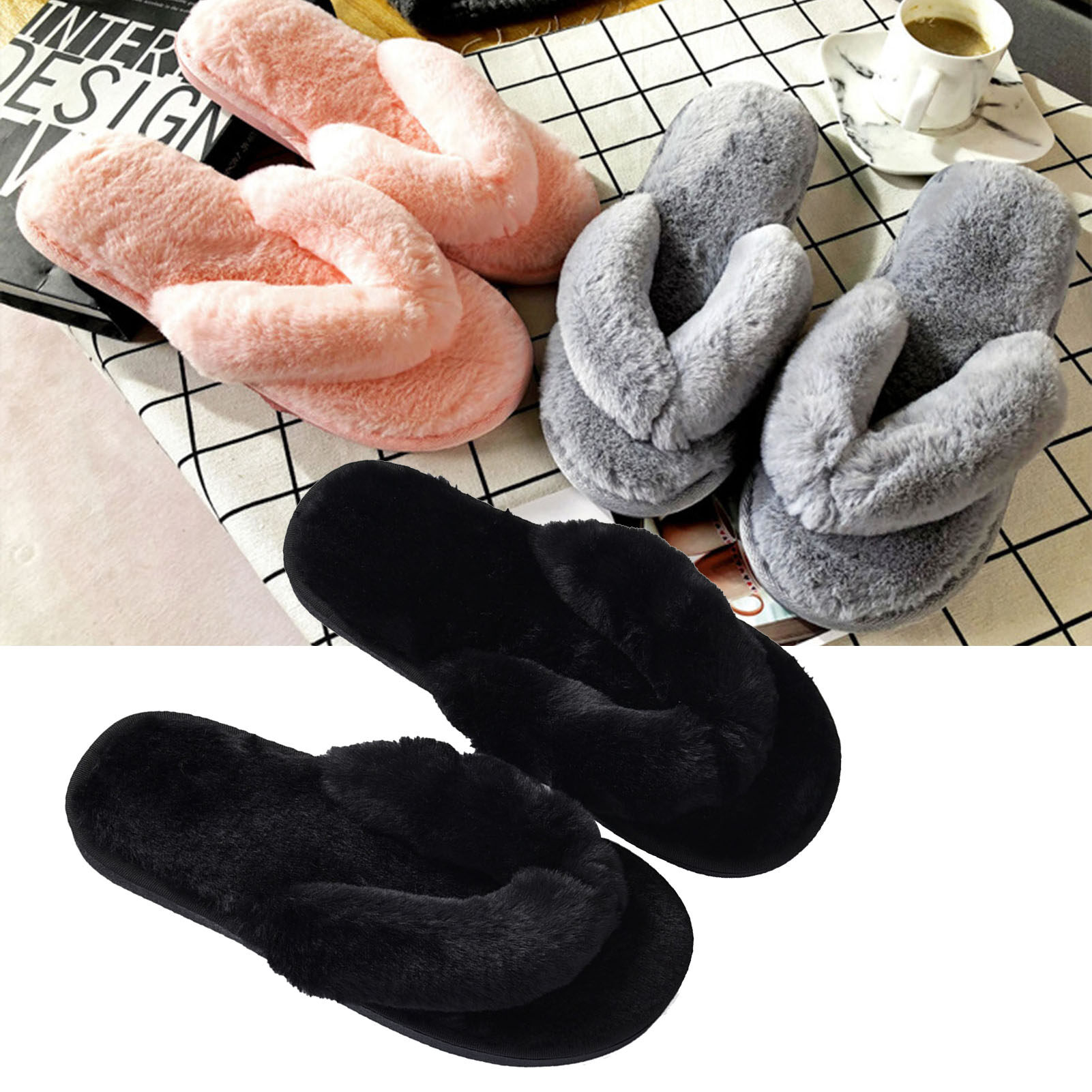 Broadfashion Autumn Winter Women Home Flip Flops Faux Bunny Fur Fluffy Anti-Skid Slippers