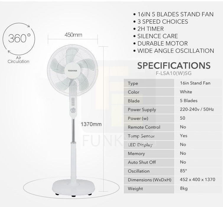 TOSHIBA 16" Stand Fan With Timer F-LSA10(W) with 1 Year Toshiba Warranty