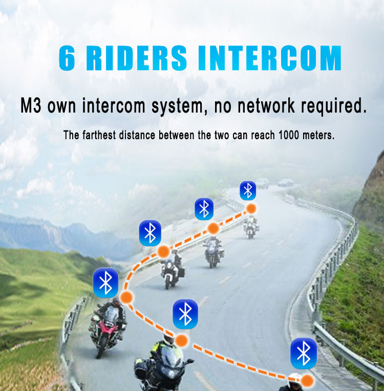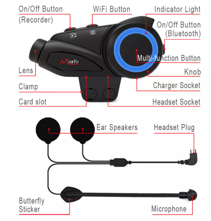 Maxto M3 Waterproof Motorcycle Helmet Camera HD 1080P Video Recorder Wide Angle Lens Group 6 Riders Intercom 1000M Bluetooth With FM