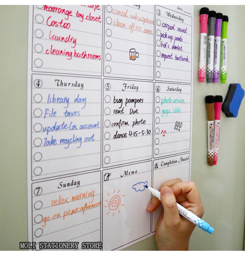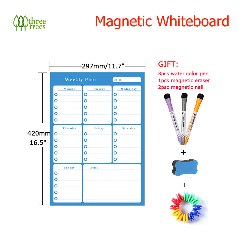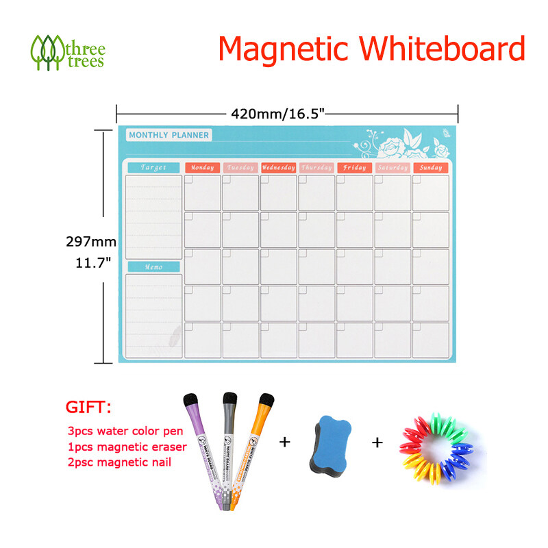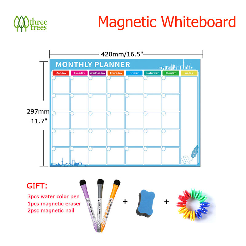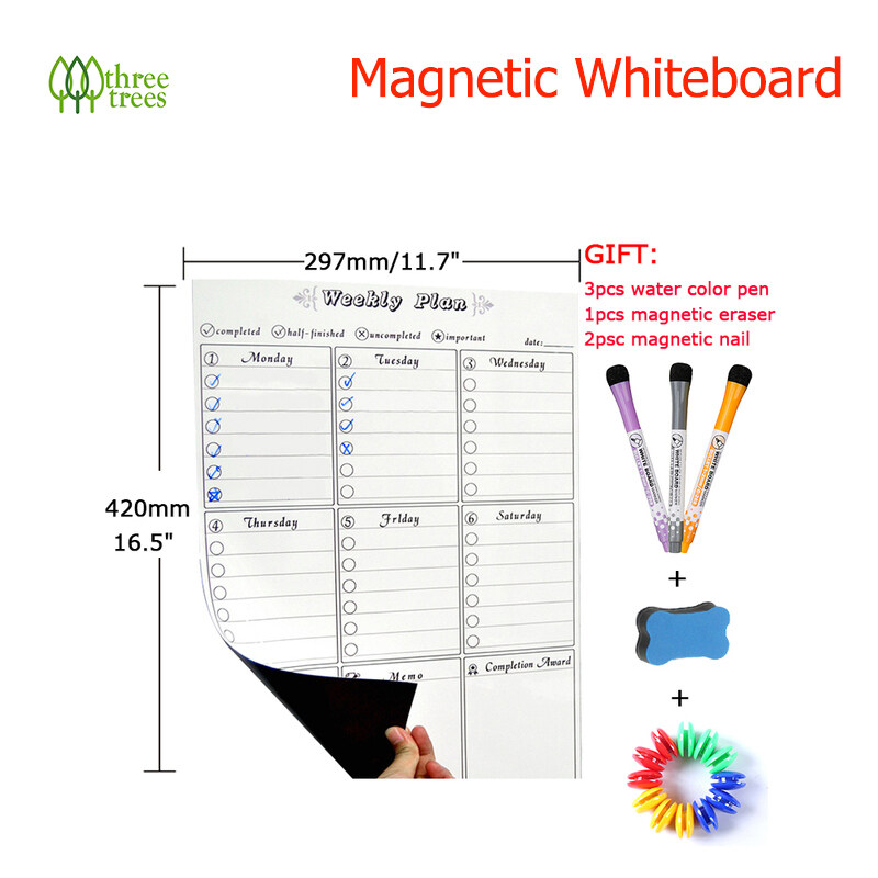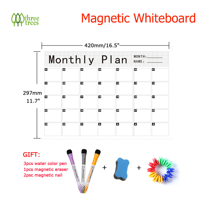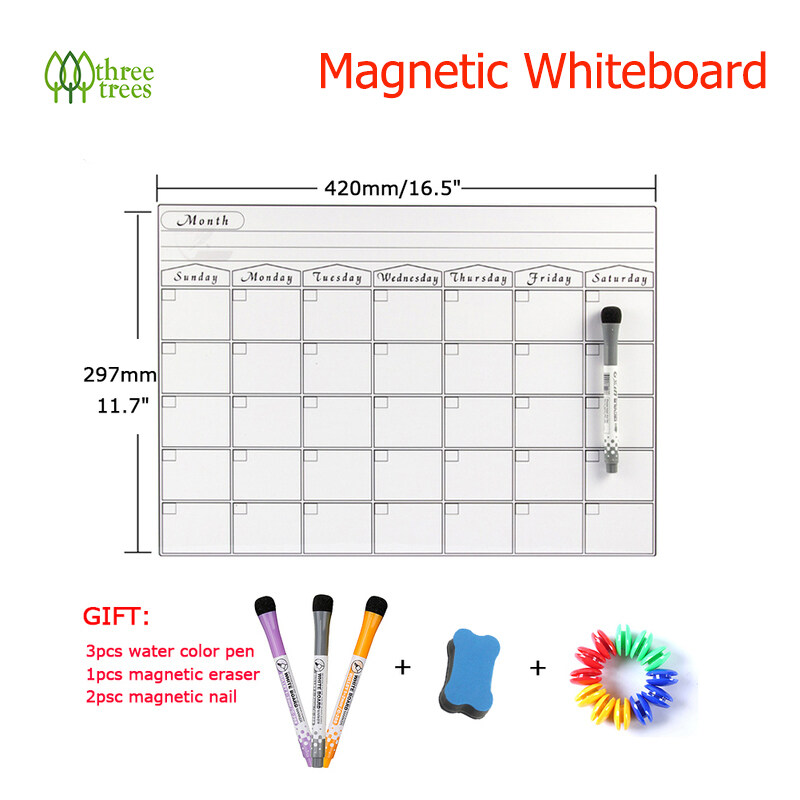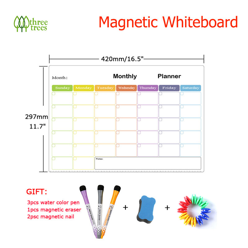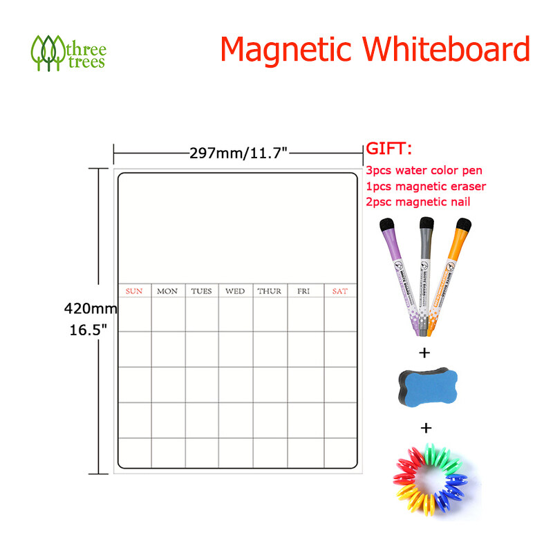 threetrees A3 Size Magnetic Weekly Monthly Planner Calendar Dry Erase Whiteboard Family Home Office Note Board Message Drawing Fridge Magnet Sticker Board