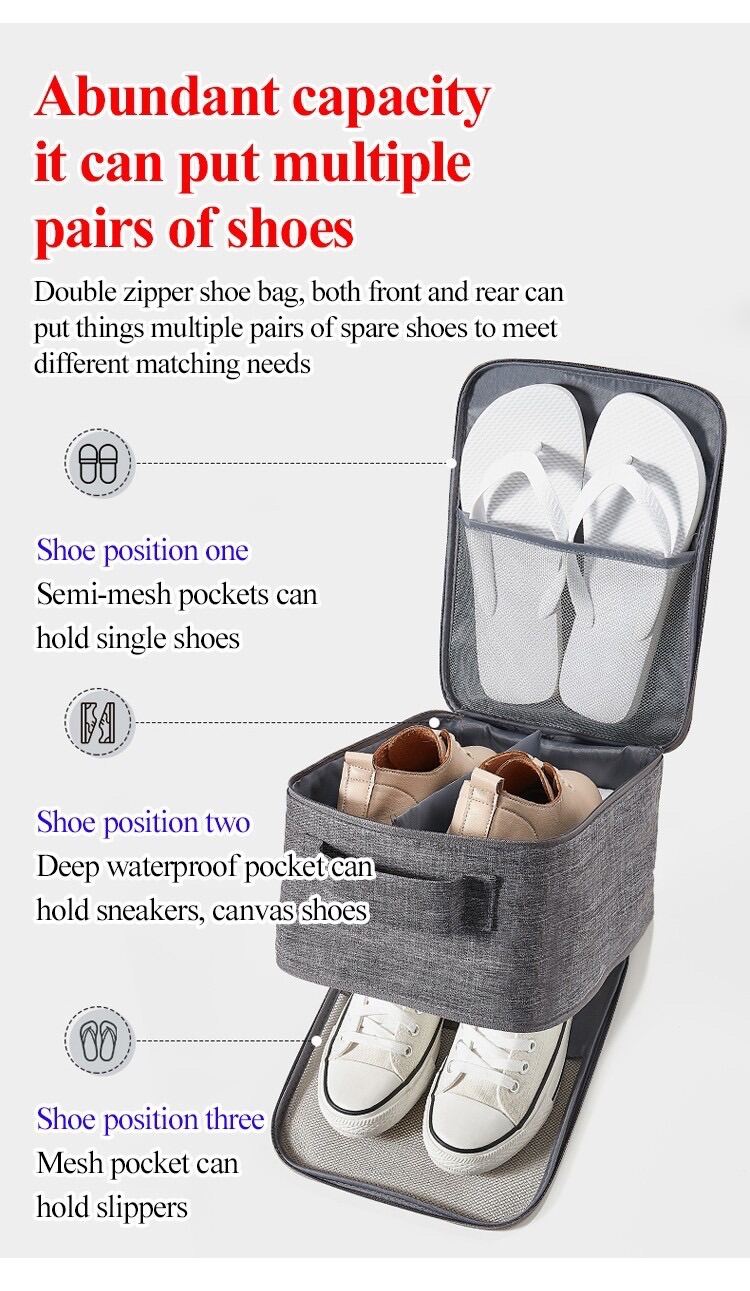 and two-way zippers. Not only a travel shoe bag, but also can be a nice home organization tool to save more space.