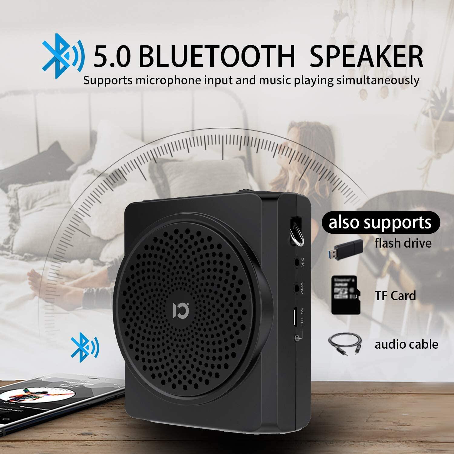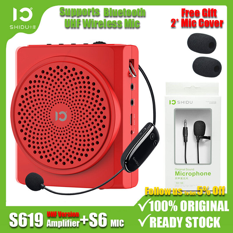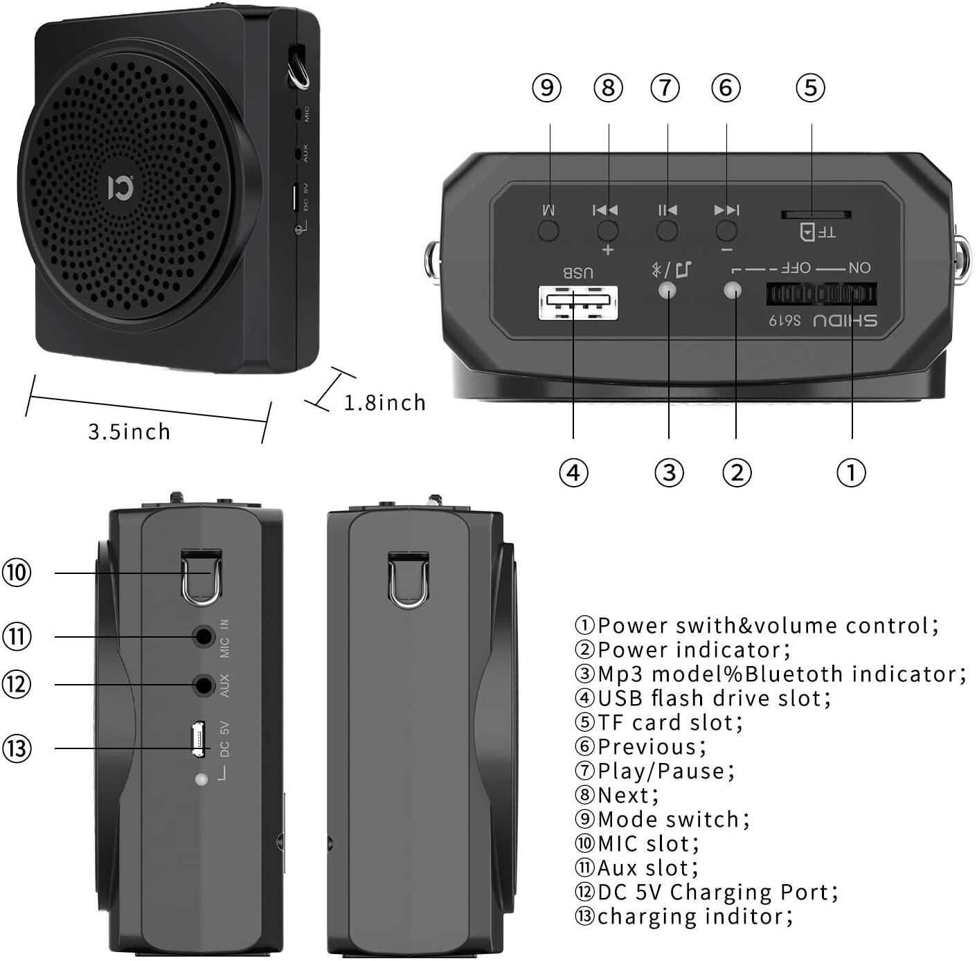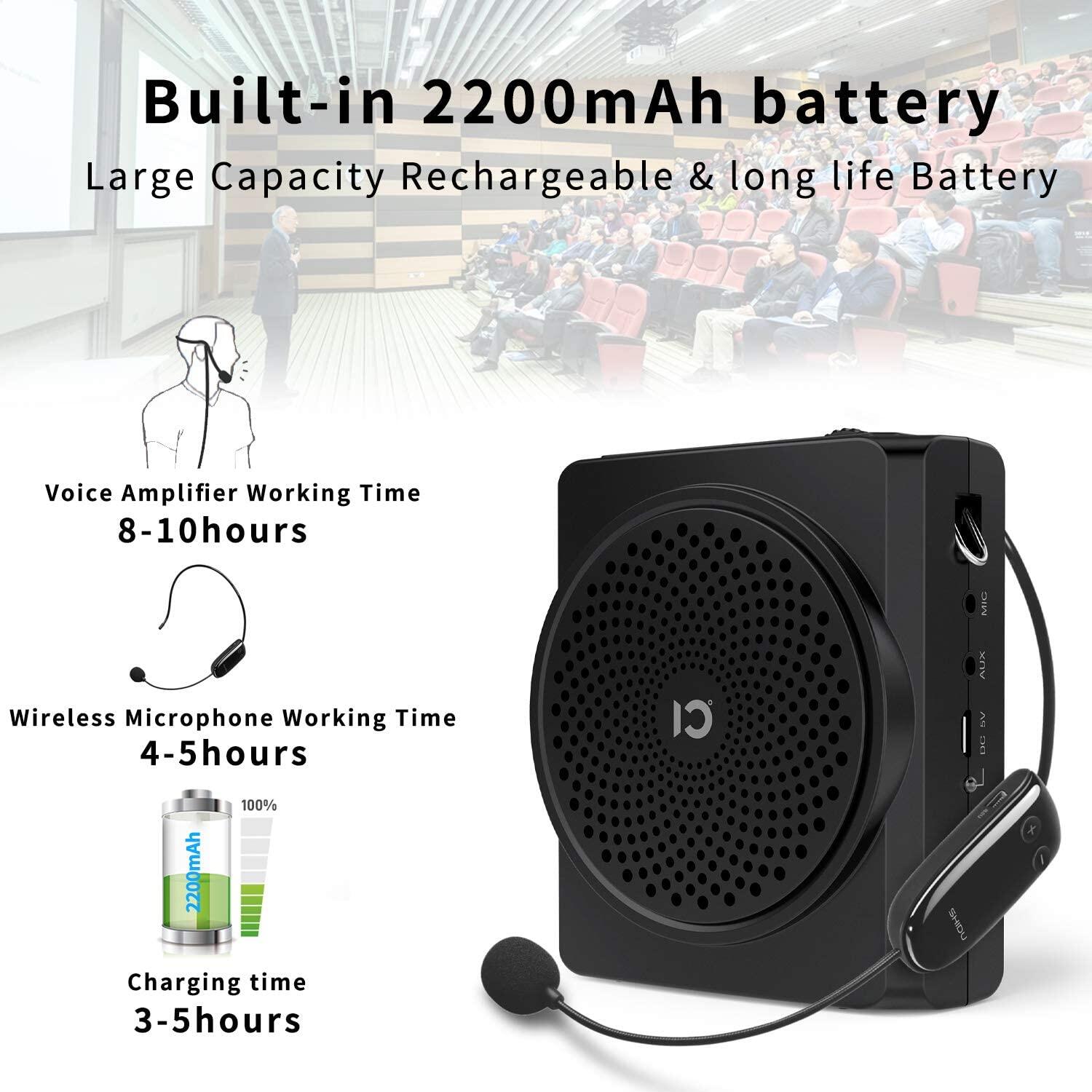 SHIDU S619 UHF Portable Voice Amplifier + S6 Lavalier Wired Mic with UHF Microphone Headset, Mini Bluetooth Pa Speaker 16W 2200mAh Rechargeable Personal Amplifier for Teachers Tour Guide Yoga Training