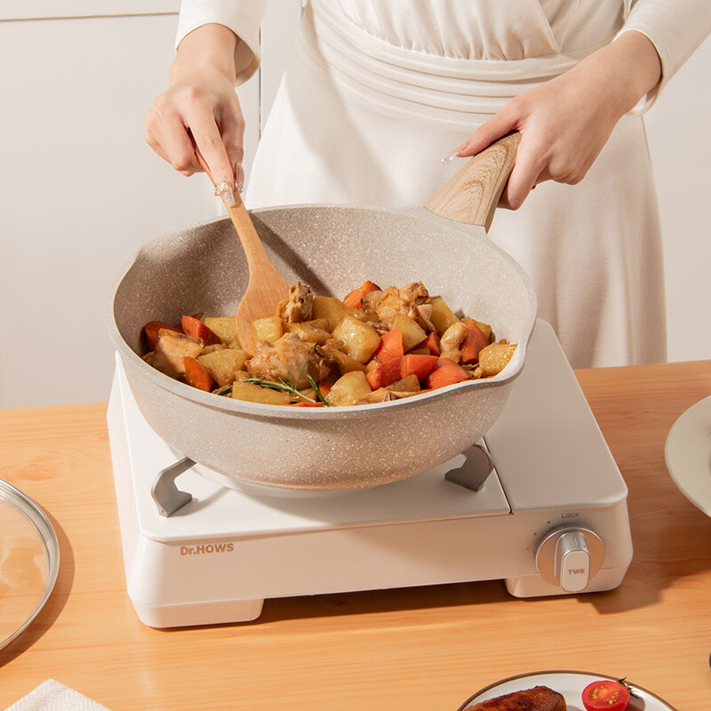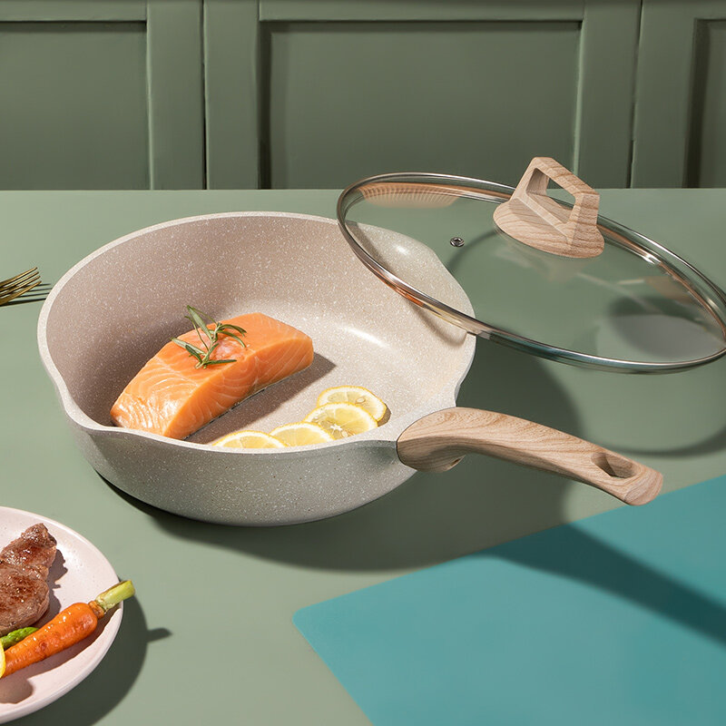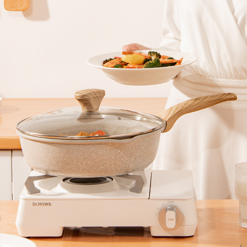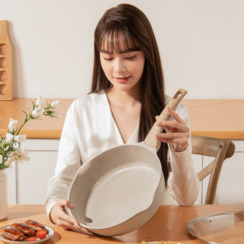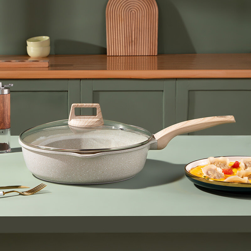 EOX Deep Frying Pan cookware Wok Non-Stick pan Skillet 24/28cm with lid Maifan Stone Suitable All Stove