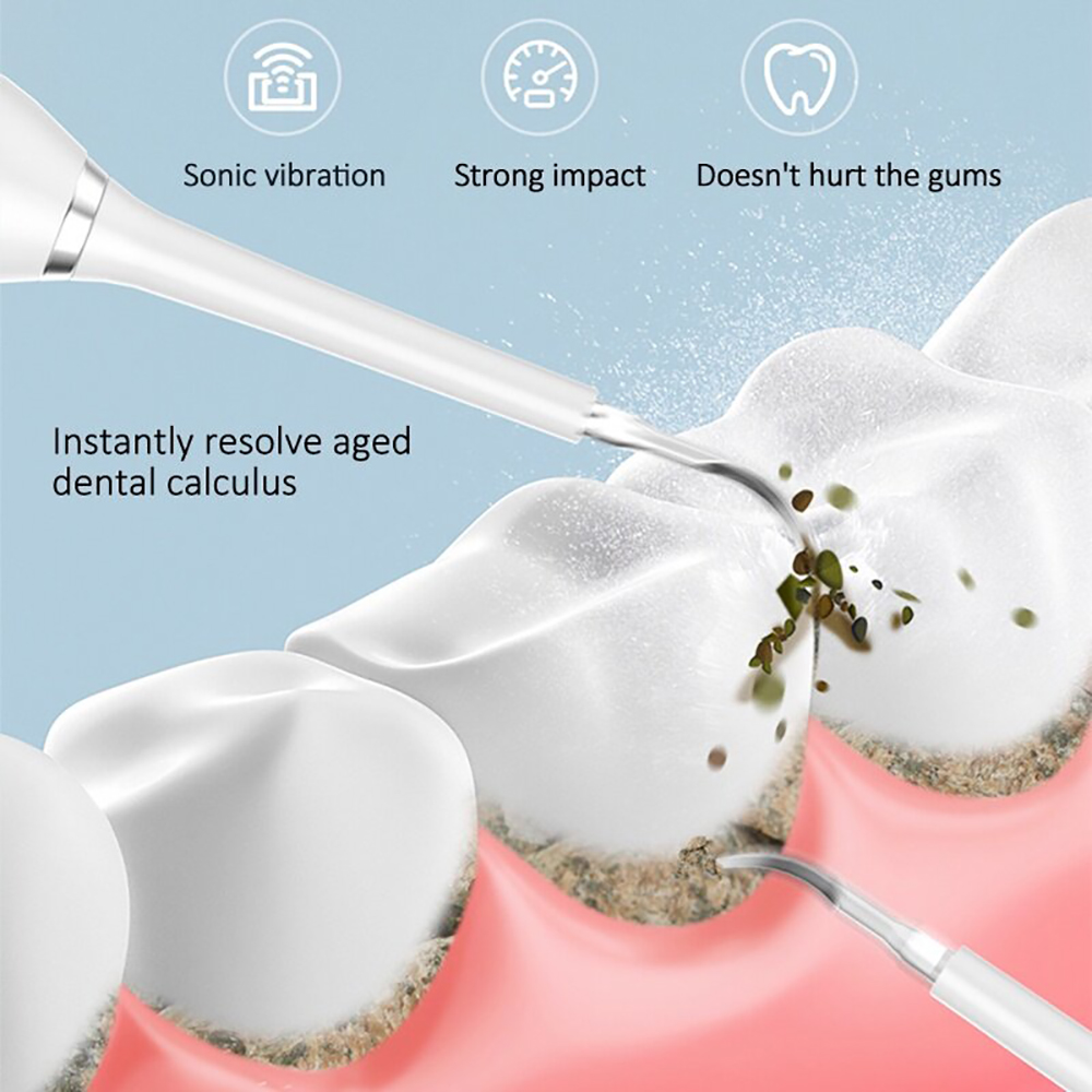 The sonic Tooth Cleaner can effectively separate dental plaque, dental calculus, and stains remove hard tartar easily from the teeth preventing gum disease.