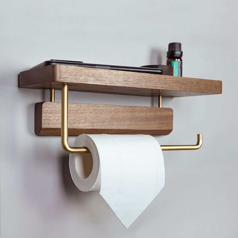 Mori Wood Liangpin Solid Wood Tissue Holder Toilet Walnut Roll Paper Storage Rack Nordic Style Toilet Tissue Box