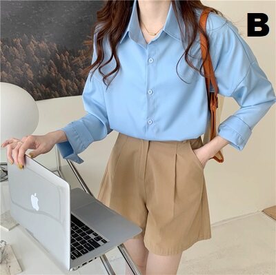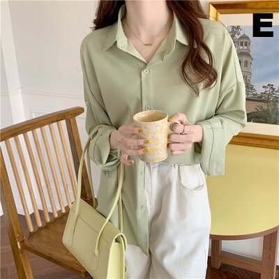 Women Clothing Long Loose Sleeve Polo Colar Fashion Tops