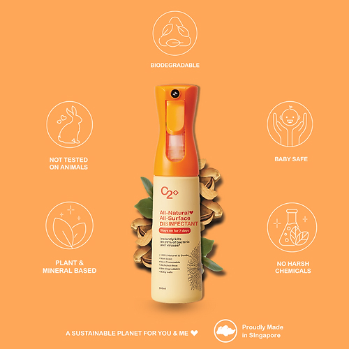 [ Made in Singapore ] C2+ All-Natural All-Surface Disinfectant 300ml, 100% Food Grade, Kills 99.99% of Bacteria and Viruses, Anti-Microbial, Anti-Fungal