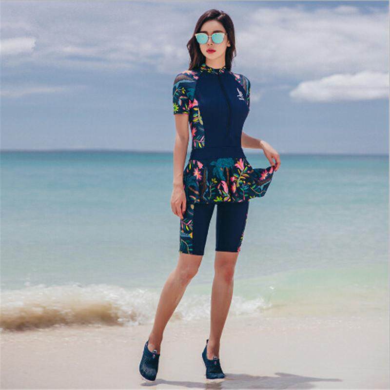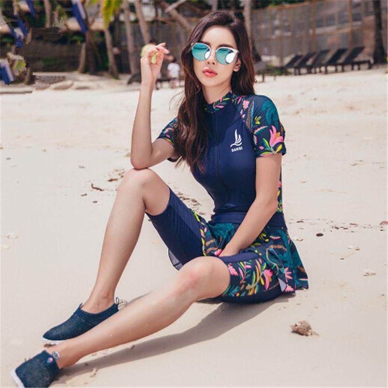 G-gourd Women Rashguards Long Sleeves Tops Shorts Set Swimming Suit for Lady Rash Guard Surf Diving Swimwear Water Sports - intl
