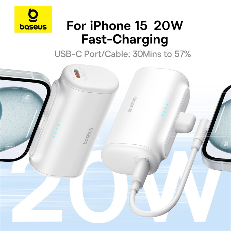 Baseus Fast Charging Power Bank with Built-in USB-C 5000mAh Portable Charger 20W for iPhone 15/15 Plus/15 Pro/15 Pro Max Sansung S22 and more
