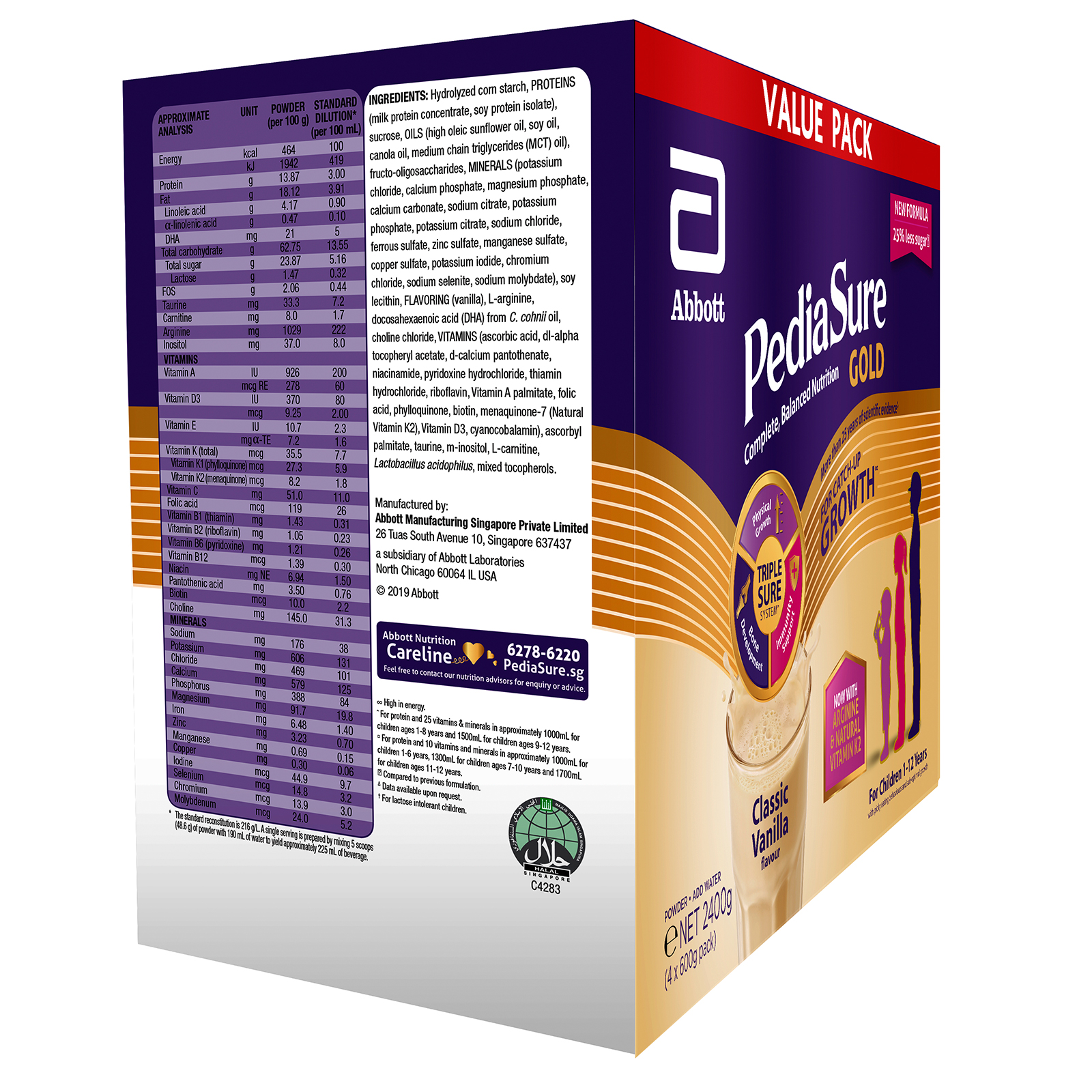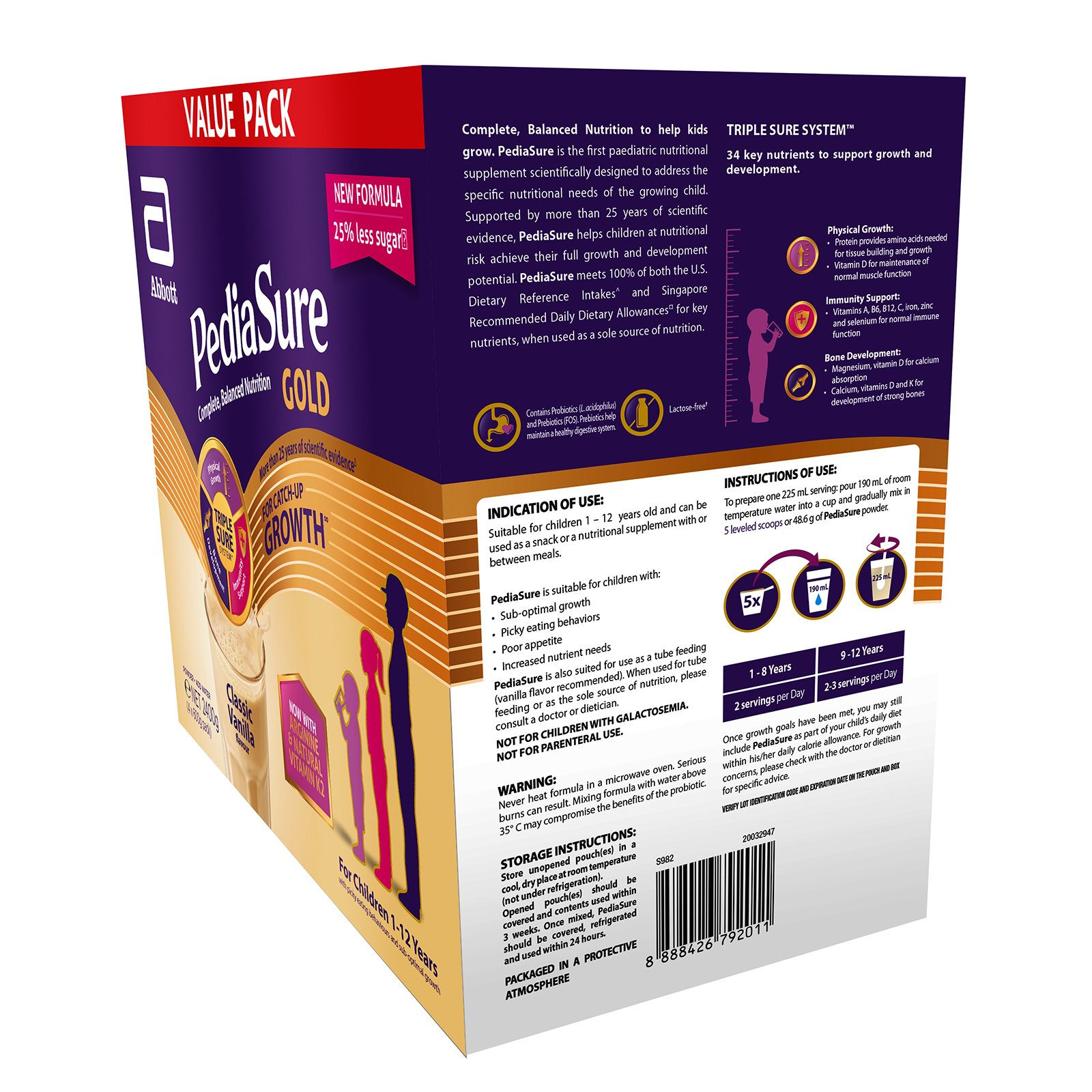 PediaSure Gold Value Pack - Classic Vanilla, 2.4kg (4 x 600g)