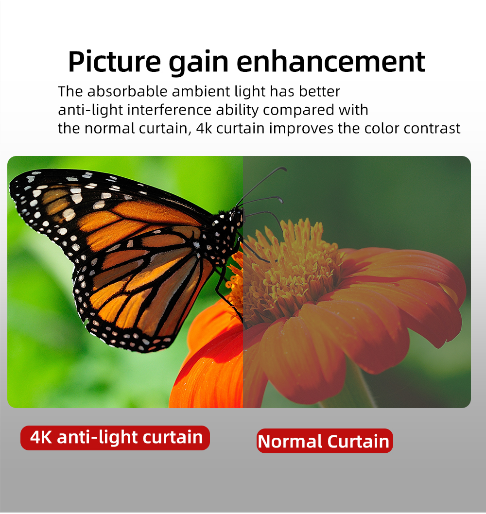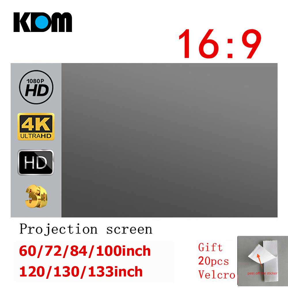 • Never Miss OUR HIGH Quality Projector Screen,It will be your projector’s best friend, start a new way of entertainment. 60/72/84/100/130/ inch HD 16:9 EXCELLENT Movie Screen made from natural polyester fabric. Different from other ordinary movie screen, this is upgraded version,grey curtain, effectively improve the projection contrast. Avoid light penetration for a clear image Screen.