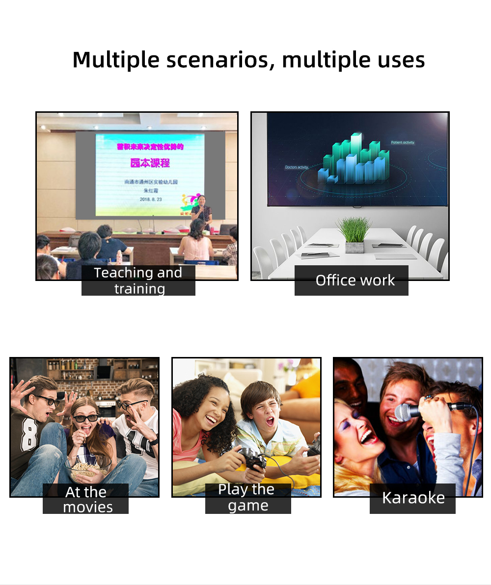• WORK On Most Situations,Display all you want, just do it! Displaying movie, sport games, photos, music video, games, etc, it make your life more fun! Or you can present your company graphics and data on the office, sharing your photos on your propose marriage. It could be used as professionally, romantically,practically, just depends on what you need.