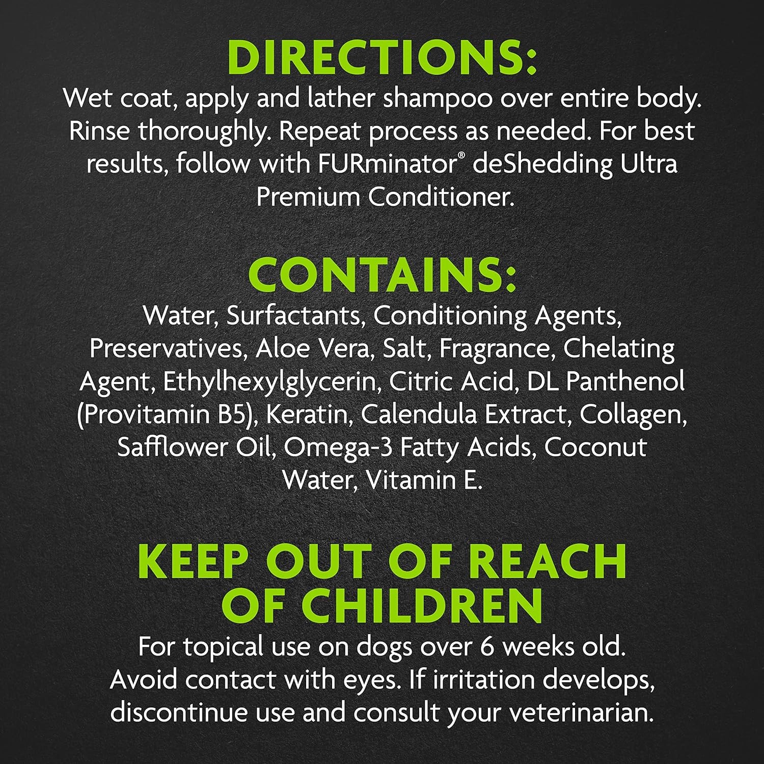 • GROOMING CONFIDENCE: When used with the complete FURminator line of products, this bathing product offers a complete system for deShedding, cleansing and conditioning. For best results, use with FURminator deShedding Ultra Premium Conditioner.