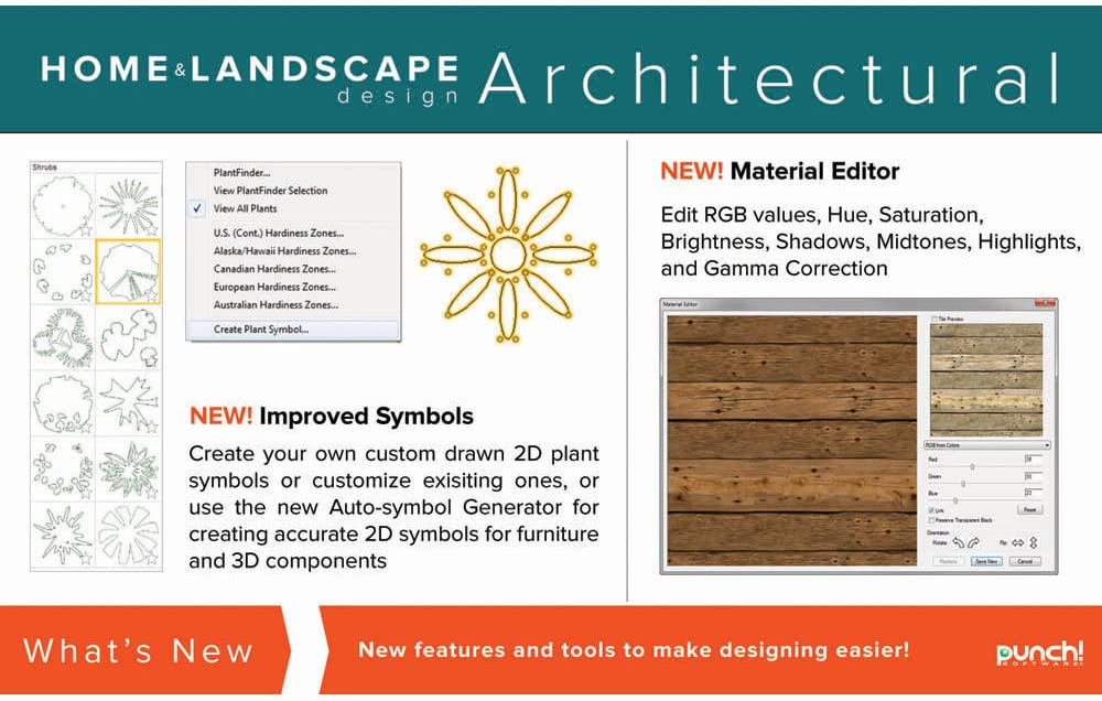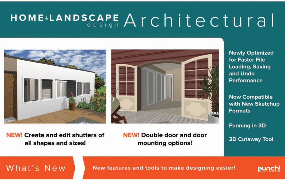 Design It - Detail It -Visualize It - Live ItEnhanced drawing tools, floor plans, brand name product libraries and photorealistic rendering capabilities make designing new homes more efficient, easier and exciting than ever! Whether remodeling, renovating, designing or building a brand new house, Punch! Home & Landscape Design Architectural Series v19 contains a powerful array of tools and features to help create unique, professional-level designs.