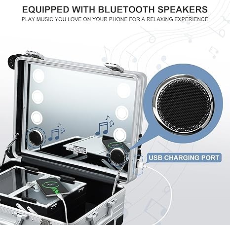 • 【BLUETOOTH SPEAKER】- A portable makeup vanity station with built-in Bluetooth speakers allows you to easily connect and enjoy music or watch makeup tutorials while getting ready. Simply touch the screen to activate the Bluetooth switch. Additionally, you can charge your phone by plugging it into the station.
